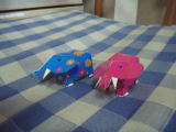 紙で組み立てたペアのぞう
