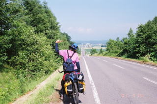 | 羅臼岳を横に見ながら風を切る |