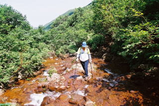 | 斜里岳への道は沢登り気分満喫 |