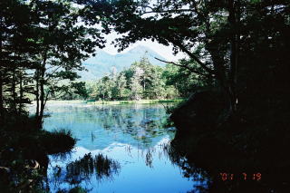| 知床五湖の二湖に映る逆さ羅臼岳 |