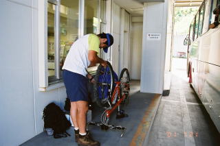 | ウトロで輪行してバスに乗り込む |