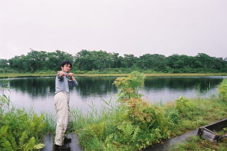 鏡沼。熊出没注意の看板。途中笹が「ガサガサ」あれは熊だったのだろうか・・・