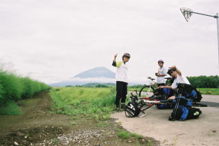 羊蹄山が見えてきた!ヤッホー?喜んでいるのは二人だけ?マウスを合わせてみて