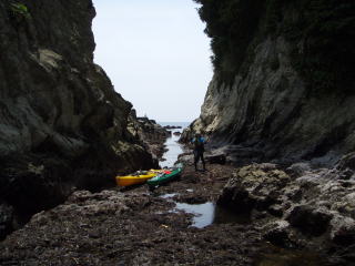 | こちらも荒崎名物「どんどん引き」。凄い狭い水路を進む |