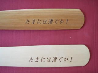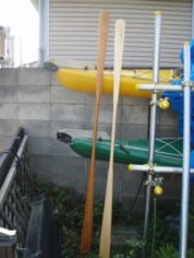 | こちらはグリーンランドパドル。通称ヤリイカパドル。「ライトハウス南伊豆」さんの作成。我輩のホームページタイトル「たまには漕ぐか!」の刻印入り! |