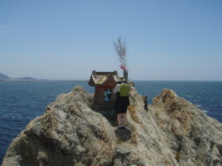 | 菜島に上陸。ここにはちゃんと神社も祭ってあり。海からの参拝 |