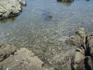 上の写真と見比べてみて。たった20分ちょいでこの潮の引きかた。あっというまにさっきの水面が陸地に。 |