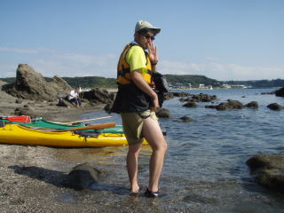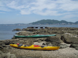 | 中古のシーカヤックを購入し、初のパドリングとなりました。広島の「パドルパーク」からスプレースカートを買い、南伊豆の「ライトハウス南伊豆」からパドルを購入し、待ちにまた日がやっと来ました。場所は三浦半島。今回お世話になったのは「コアアウトフィッターズ」というシーカヤックショップ。ガイドの平野さんに連れられての日帰りツーリング。 この日は、真夏日となり暑いのなんのって。近くてもなかなか行かなかった三浦半島。今回は新しい発見ありと、すごく楽しい1日となりました。これからはドンドン三浦に行って漕ぎまくるぞ!でも、ホームページのタイトル通り、たまには漕ぐか!って感じかな。やっぱり(笑) |