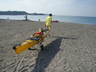 | 新アイテム登場!その名はゴロゴロ君!ヤー、カヤックを持って運ぶ事を考えたら快適快適。 |