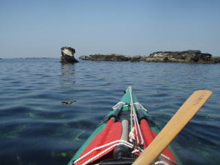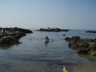 | 進路を南にとると、そこは岩礁帯。岩岩の間を通りながら進む |