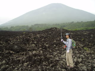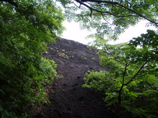 | 第2噴火口跡。ここから先ほどの溶岩流まで溶岩がつながっている。 |
