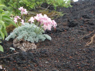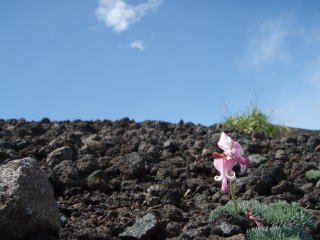 | 8年ぶりの東北遠征。昨日、一面チングルマの秋田駒ケ岳を登ったときに地元の人から、「岩手山のコマクサがちょうどいいよ」との情報をもらい、いざ岩手山へ! で行ってみると、そのコマクサの量にびっくり!登山道の両脇にコマクサがびっしり咲き乱れ、開いた口がふさがらないって感じ。黒い火山灰にピンクのコマクサが所狭しと。 やー、それにしても圧巻!これを見れば辛さも吹き飛びますな。辛さといえば、この岩手山、標高差1400mもあり、結構きますよ、足に(笑)。特に、コマクサ団地の登りと、非難小屋からの直登は、きついのなんのって。 でも、ここのコマクサは一見の価値あり。是非みなさんも行ってみて! |