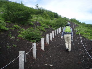 | だいぶ上がってきました、先ほどの小屋があんなに小さい。写真右上の非難小屋、分かります? |