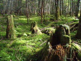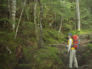 | 沢沿いは苔が生い茂り、屋久島のような感じで気持ちいい |