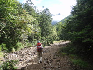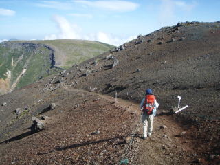 | 硫黄岳への最後の登り。ケルンが沢山ありました |