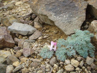 ここにも岩の陰に隠れタカネナデシコが咲いていた |