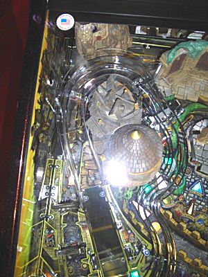 | ▲サイドループはともかく、緩やかなサイドランプレーンは通常右フリッパーからも狙い打ちが可能。 | ▲リフトスロープ内部には剛速球キッカーがある。これをトラッピングでぱしっと止められる貴方は上級者。 | ▲右ランプレーンと右オービットも狙い打ちが大変なんだから!ほんの些細な誤差も許されないキツキツの配置。 |