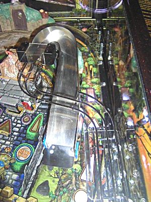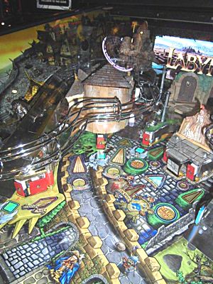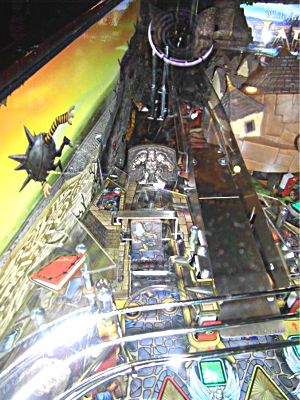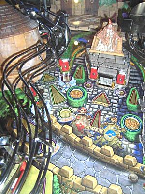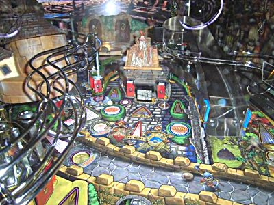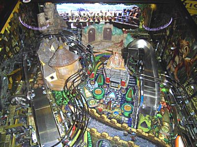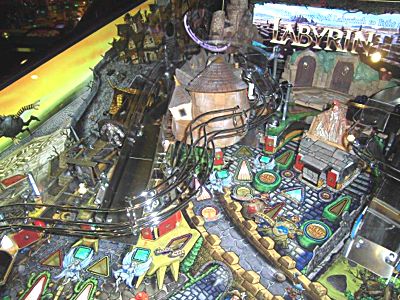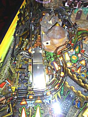 | ▲ゴブリンシティーの街並みも再現。家の尖塔からルードーがにょっきり頭を出す、映画名シーンの再現もあり | ▲左下スクープ。ここは手の大群の落とし穴の再現となっている。Ex.ライトやマルチボールも有り |