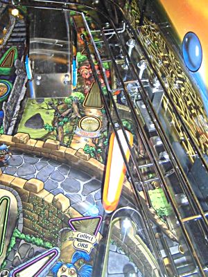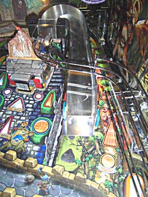 | ▲ゴブリンシティーの家々をぐるっと旋回する左ランプレーン。登坂がリフトスロープとなっている。 | ▲賢者スクープの手前は1枚ドロップが遮っている時がある。これを倒して奥のスクープに入ってご神託をもらおう。 | ▲サイドフリッパー。実は内側に重要なポケットがある。これを上げっ放しにして狙わなければならない。 |