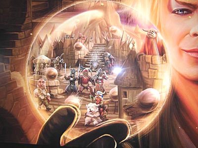 | ▲ジャレス王お見通しのオーブ内には市内に攻め入るディディモスやホグル達の姿が。あれ?サラがいない。ジェニファーコネリーはどうした! | ▲スカルプチャ、盤面アート、バックパネルLCD……とこちらも鮮烈で目も眩むまばゆさ。メインLCDと連動するデュアルディスプレイシステムも効果的。 |
