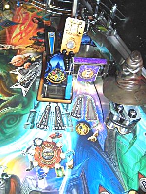 | スタッフ | プレイフィールドデザイン:エリック・メウニエル/ゲームデザイン:ジョー・カーツ/美術:MinaLima(映画ハリポタ公式アーティスト ミーナリーマはミラフォーナ・ミーナ、エドワルド・リーマのユニット)、ジャン-ポール・デ・ウィン、ジャスパー・エイブルス/ソフトウェア:ダンカン・ブラウン、ビル・グルップ、ジェイスン・アレン、テイラー・スナイダー/エレクトロニカルエンジニアリング:ジョー・アーヌスト、ウィル・メルカード、エリック・ミラー、ルナ・シラヴァーファング/LCDアニメ:オラフ・グレミー、ジャン-ポール・デ・ウィン、ジョニー・ウィーゲル/音楽:デヴィッド・シール、ピアース・コルバート/声優:マーク・シルク/メカニカルエンジニア:ダン・レイチック、ニック・ジェンセン/3Dスカルプチャ:ラース・ショールテン/許諾監修:ジャック・グァルニエリ/プロデューサー:デビー・ホルスティン/プロダクションディヴェロップメント:クリストゥル・ゲミニック | |